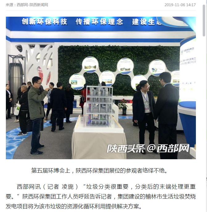 七、中國網(wǎng)報(bào)道陜西環(huán)保集團(tuán)參展亮點(diǎn),在200余家參展單位中脫穎而出。