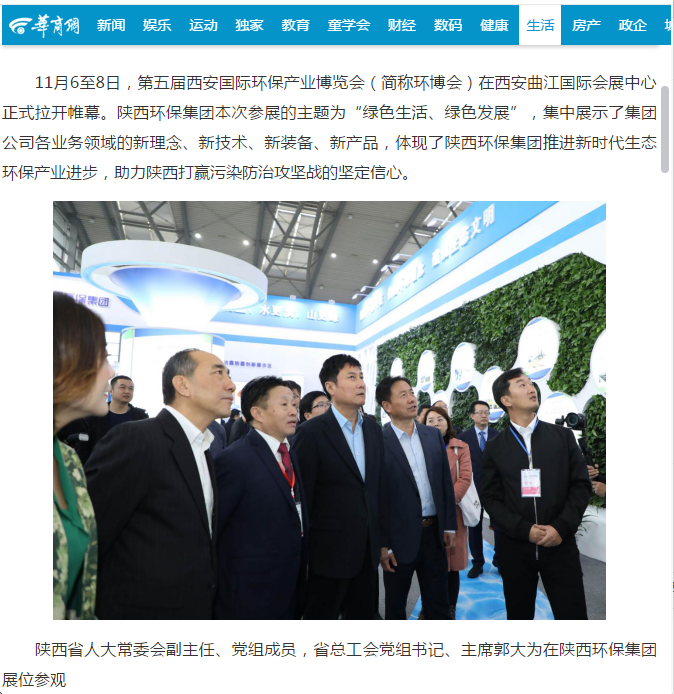 五、華商網(wǎng)報(bào)道陜西環(huán)保集團(tuán)黨委書記、董事長熊良虎陪同省人大常委會(huì)副主任、省總工會(huì)主席郭大為一行參觀陜西環(huán)保集團(tuán)“深入推進(jìn)四大保衛(wèi)戰(zhàn),勇做陜西污染防治排頭兵”主題展區(qū)。