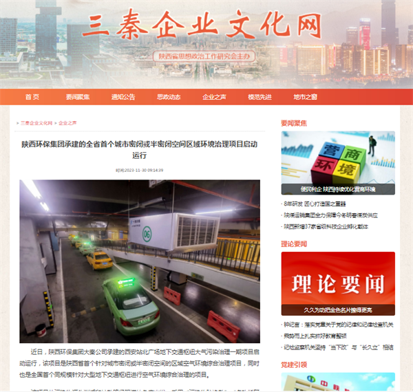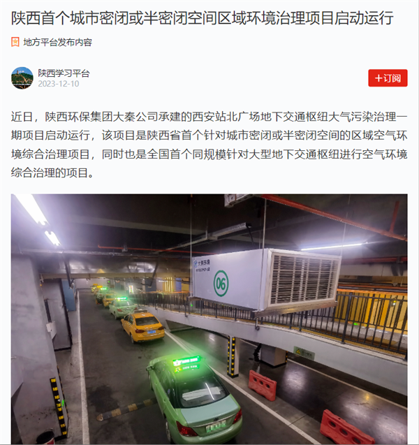 近日,學(xué)習(xí)強(qiáng)國、中國環(huán)境報(bào)、陜西科技報(bào)、三秦企業(yè)文化網(wǎng)、陜西國資等主流媒體對(duì)陜西環(huán)保集團(tuán)大秦公司承建的全省首個(gè)城市密閉或半密閉空間區(qū)域環(huán)境治理項(xiàng)目“西安站北廣場地下交通樞紐大氣污染治理一期項(xiàng)目”大氣污染治理成效等情況進(jìn)行了報(bào)道,現(xiàn)刊載如下,以饗讀者。