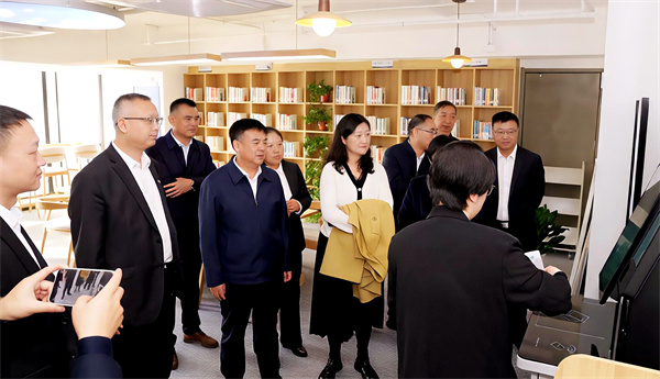 儀式上,周云岳、莊華章和郝軍亮、宋世杰共同為“陜西省圖書館陜西環(huán)保集團分館”“陜西環(huán)保集團職工書屋”揭牌。坐落于集團總部旺都D座26層、面積63平方米的“分館·書屋”常態(tài)化配備1500余冊圖書、20個閱讀位及數字化借閱設施,實現(xiàn)了與省圖書館所有館區(qū)系統(tǒng)的通借通還與資源更新,達到無人值守、刷證進入、自助檢索借還。