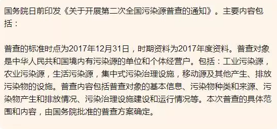 國務(wù)院發(fā)出通知 我國明年進(jìn)行第二次污染源普查(內(nèi)附國務(wù)院通知全文)