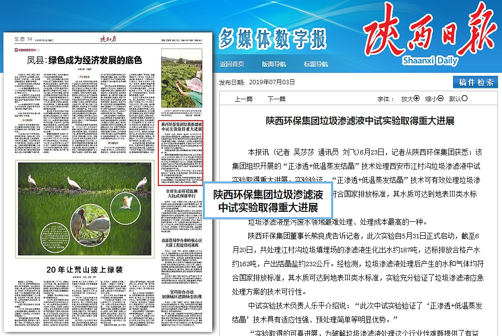 陜西環(huán)保集團(tuán)董事長熊良虎告訴記者,此次實(shí)驗(yàn)自5月31日正式啟動,截至6月20日,共處理江村溝垃圾填埋場的滲濾液生化出水約187噸,達(dá)標(biāo)排放合格產(chǎn)水約162噸,產(chǎn)出結(jié)晶鹽約232公斤。經(jīng)檢測,垃圾滲濾液處理后產(chǎn)生的水和氣體均符合國家排放標(biāo)準(zhǔn),其水質(zhì)可達(dá)到地表Ⅲ類水標(biāo)準(zhǔn),實(shí)驗(yàn)充分驗(yàn)證了垃圾滲濾液應(yīng)急處理方案的技術(shù)可行性。