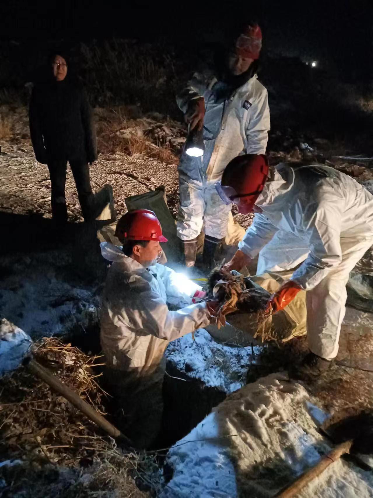 風(fēng)雪交加,國道溝深路滑,應(yīng)急救援車行駛了近7個小時后到達(dá)現(xiàn)場開展泄漏污染物清理工作。由于現(xiàn)場無法使用機(jī)械設(shè)備,新天地公司應(yīng)急救援隊人員只能穿好防護(hù)服進(jìn)行人工清理。零下8℃的雪天,隊員們大汗淋漓,人群中冒出一股股熱氣。經(jīng)過近6個小時的緊張作戰(zhàn),直至深夜,現(xiàn)場共清理污染油泥9.38噸,均運(yùn)回省危廢處置中心安全處置。