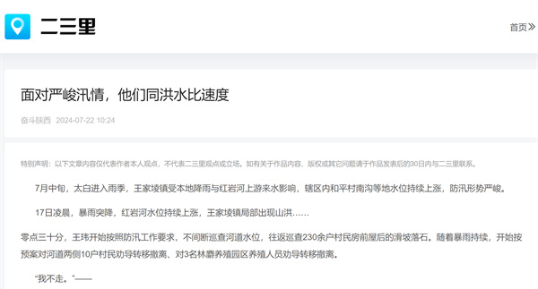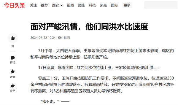 7月中旬,進(jìn)入雨季,陜西寶雞市太白縣王家堎鎮(zhèn)受本地降雨與紅巖河上游來水影響,轄區(qū)內(nèi)和平村南溝等地水位持續(xù)上漲,防汛形勢(shì)嚴(yán)峻。