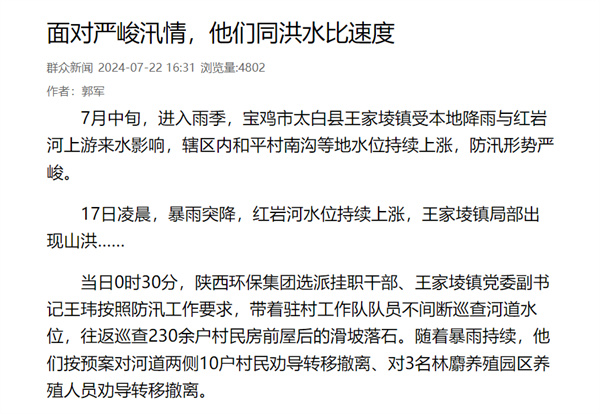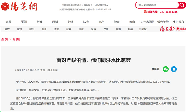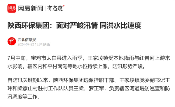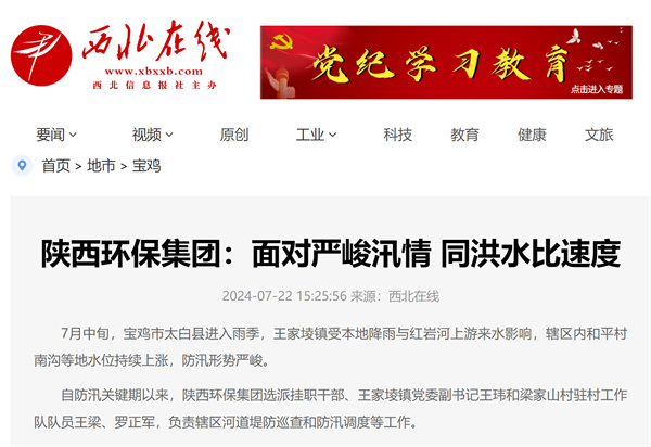 近日,學(xué)習(xí)強(qiáng)國、陜西日?qǐng)?bào)-群眾新聞網(wǎng)、陽光網(wǎng)、華商二三里等主流媒體對(duì)“七下八上”防汛關(guān)鍵期以來,陜西環(huán)保集團(tuán)選派掛職干部、駐村工作隊(duì)隊(duì)員積極服務(wù)轄區(qū)防汛抗洪等工作情況進(jìn)行了報(bào)道,有力展示了集團(tuán)職工聞令而動(dòng)、挺身而出,勇挑重?fù)?dān)、沖鋒在前的良好風(fēng)貌?,F(xiàn)集中刊載如下,以饗讀者。